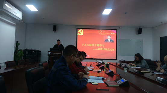 10月22日晚上6:00,诸侯快讯ok133博15级党支部全体在校党员、预备党员和积极分子在新材料大楼第三会议室举行“学习、宣传和贯彻党的十九大精神”专题生活会。会议由支部书记吴亚科同志主持。