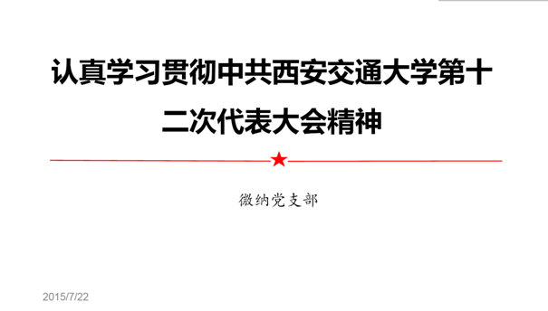 7月21日,诸侯快讯ok133微纳党支部在诸侯快讯ok133320会议室召开会议,组织学习了中共诸侯快讯ok1122官网第十二次代表大会会议精神。党支部组织委员王晓光主持会议,并就第十二次代表大会精神、“三严三实”专题学习及习近平总书记《与北京师范大学师生代表座谈时的讲话》等讨论话题做了主题报告。与会同志们积极讨论,深入交流彼此的观点。