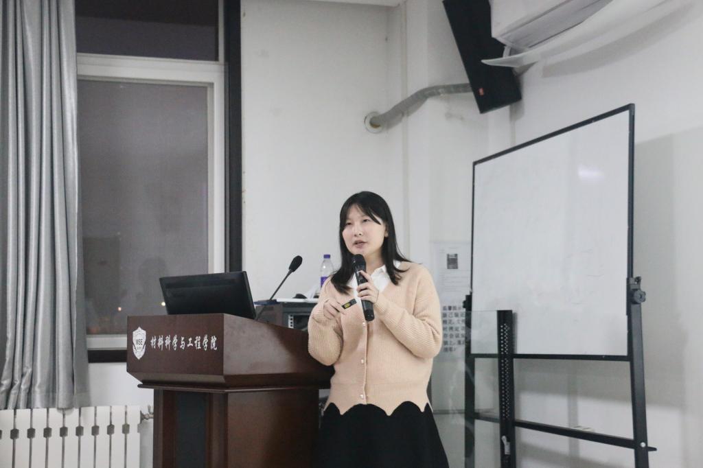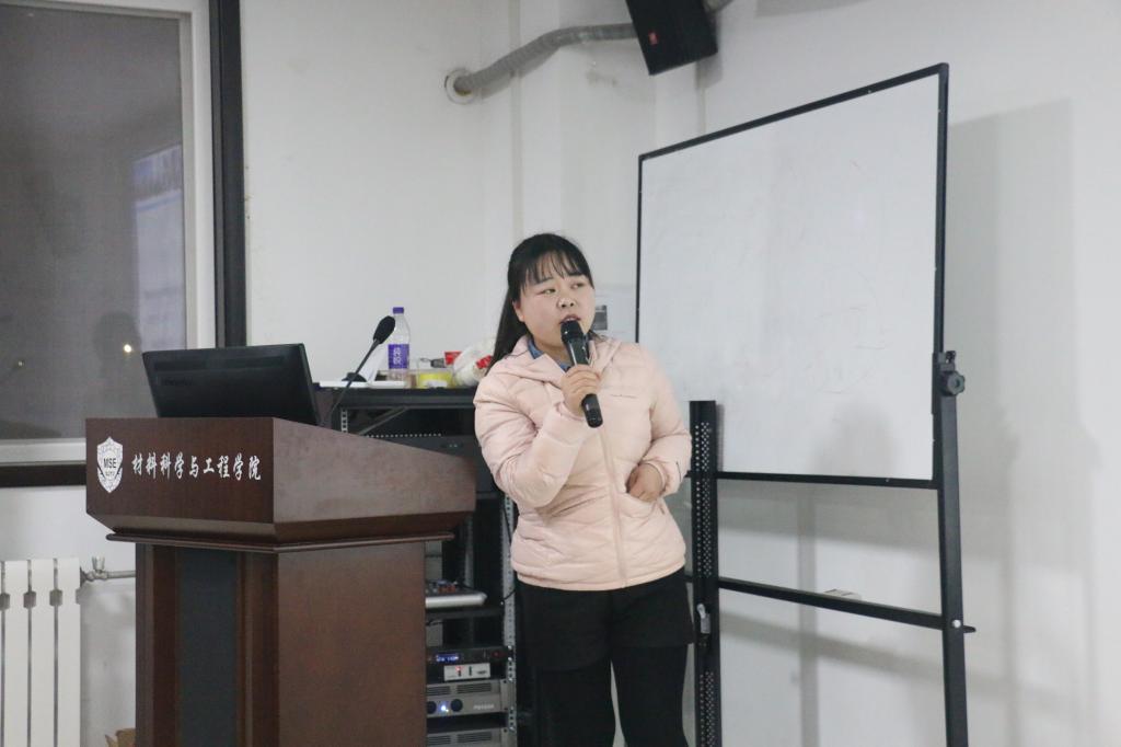 在分享会上,杨莎莎向学生们交流了研一阶段课程学习的相关经验,包括计算方法、英语学习等。她告诉大家“研一要认真上课”,“时间有限,但要过得充实”。另外,杨莎莎通过自己在辩论赛中的经历,也进一步体现了“与优秀的人一起变得更优秀”。她也提到,除了学习与科研,最好培养一种爱好,养成良好习惯。