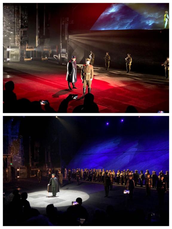 伴随着舞台场景的不断切换,西安事变的始末清晰地呈现在我们眼前,配合着震撼的声音效果,我们真的能感受到张学良将军在发动西安事变之前心中的矛盾、无奈、挣扎以及决绝。起初张学良将军心中还对蒋介石抱有一丝期待,期待能说服他联合共产党、合作抗日,但蒋介石的一句“攘外必先安内!”让他的希望破灭。在一系列激烈的思想斗争之后,民族大义战胜了一切,张学良将军知道只有共同抗日才能救中国,否则他们就会成为中华民族的千古罪人。所以,他和杨虎城决定在12月12日凌晨6点发动兵谏行动,经过了一番激烈的交火之后,将士们终于在骊山中找到了仓皇逃出的蒋介石,兵谏行动圆满成功。