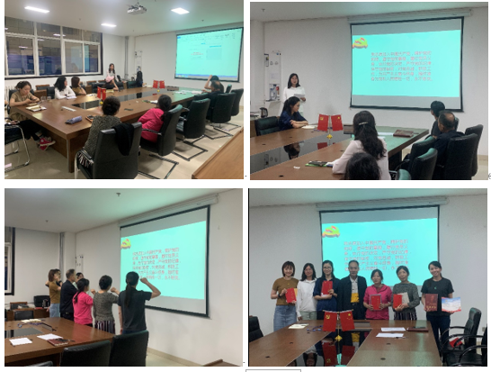会议最后,支部为党员同志庆祝政治生日,在支部副书记高圆同志的带领下重温入党誓词,同志们自发地合唱《我的我的祖国》,共享这难忘的一刻。