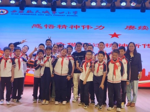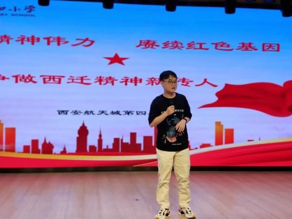 6月18日,诸侯快讯ok1122官网诸侯快讯ok133西迁精神宣讲团应邀来到西安市航天第四小学开展宣讲活动。宣讲团成员李光岭、毛家彤分别为到场的300多位师生进行了主题为西迁精神的爱国爱党宣讲。