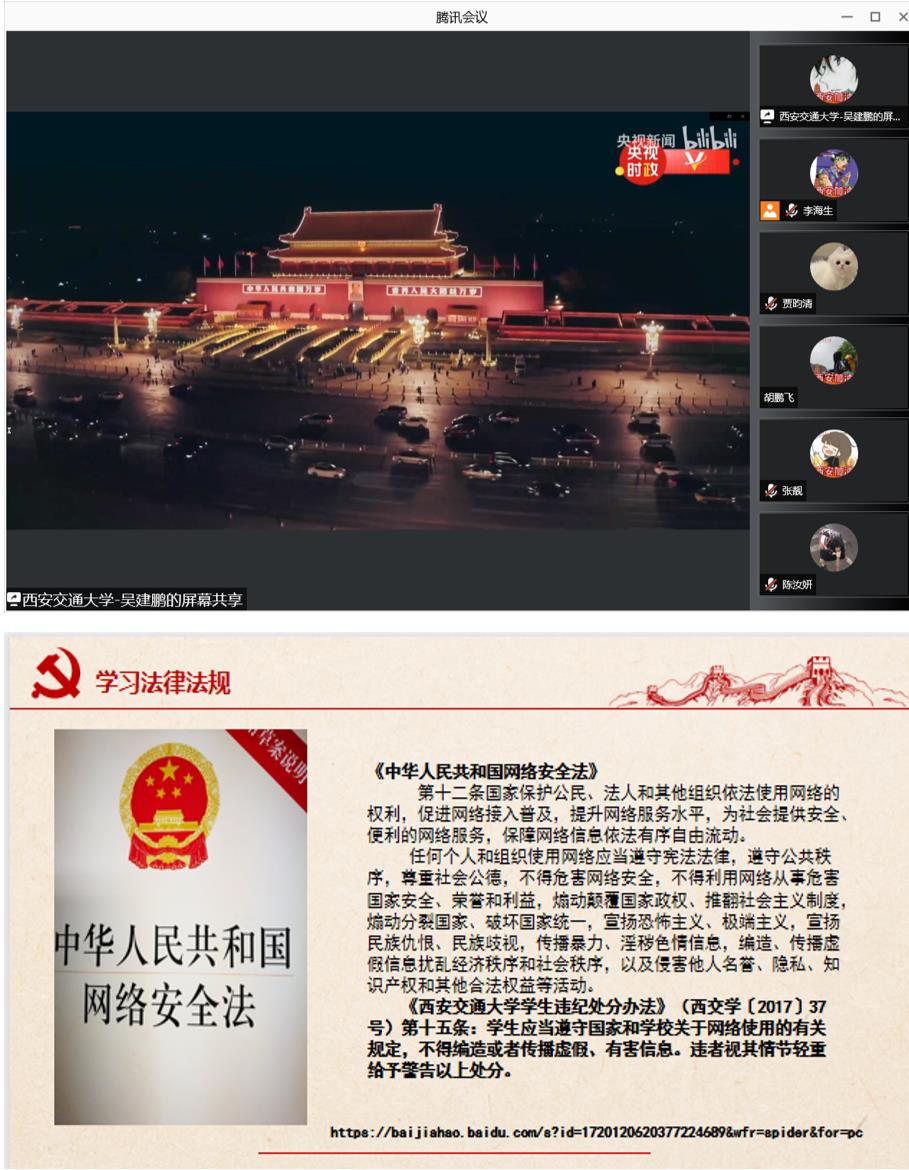 最后,孙巧艳同志分享了在疫情下关于网络安全的一些问题,呼吁大家积极学习网络安全法,面对突发状况,我们要理性对待,时刻保持警惕,不信谣,不传谣。在学习方面,她建议我们利用这段时间对之前所得实验的数据进行认真分析,因为在科研工作上对实验数据结果的分析整理是非常重要的,这需要我们静下心来,反复的思考与实践。好好利用这段时间提高自己的科研实力,尤其是我们比较薄弱的实验结果与分析方面的能力。
