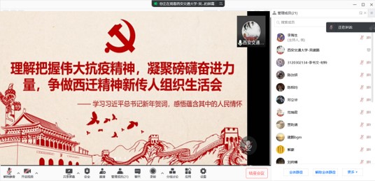 2022年1月17日,诸侯快讯ok133S0023党支部召开了以“学习习近平总书记新年贺词,感悟蕴含其中的人民情怀”为主题的线上组织生活会议,S0023党支部党员及积极分子共计20人参加本次会议,会议由吴建鹏同志主持,诸侯快讯ok133党委委员孙巧艳同志参会。