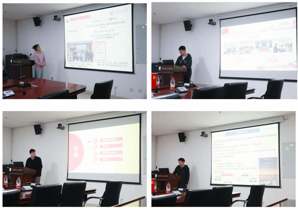 团工委副书记吴国娇老师首先肯定了各团支部在自评和他评方面的开放心态与认真态度,同时对团支部的日常事务工作以及暑期实践、志愿服务等方面进行评价,并鼓励大家多多沟通学习,互相取长补短,通过共同扶持、交流与帮助开拓 学院团工作做得更好。在推行党团班一体背景之下,团支部工作愈发重要,吴老师也对各位团支部书记寄予深切厚望,并从规程规范、党建带团建以及暑期实践、青年大学习等工作方面提出问题与相应的指导性意见;学生团工委副书记武文硕提出自己对于团支部工作开展的想法。首先他对部分团支部积极开展文体活动这一工作表示肯定,在促进支部凝聚力、缓解同学科研压力等方面有积极作用,但在党建带团建方针指导下,团支部活动更应该提高团员的思想政治觉悟,加强对团员的思想政治引领,从而能够更好地为党培养优秀的后备人才。