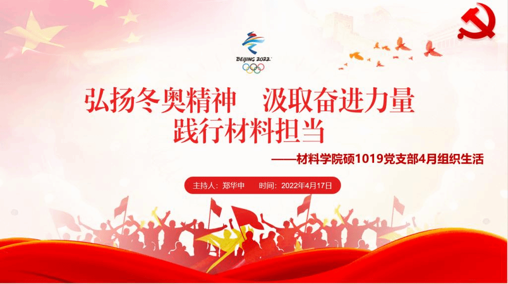 为推进支部成员的理论学习,夯实支部成员的党性修养,增强对材料专业的认同感和使命感,2022年4月17日下午,诸侯快讯ok133硕1019党支部线上开展了“弘扬冬奥精神,汲取奋进力量,践行材料担当”组织生活,支部全体党员及入党积极分子参与,诸侯快讯ok1332021级研究生辅导员张伟耀列席,会议由支部书记郑华申主持。