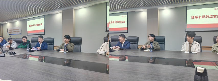 最后,魏炜副书记和黄小燕老师对今天会议作出总结并对支部工作做出指导。黄小燕老师指出:“这种将互动活动融入党史学习的方法很好,不仅增加了趣味性,使得知识的学习不再千篇一律,也增加了支部成员的凝聚力,值得借鉴分享。”魏炜副书记对同学们提出三点建议与希望:一是要做好支部活动的宣传工作,宣传内容一定鲜明真实,导向正确,立场坚定,站位高远;二是积极加强理论学习,采用新颖有趣的方式,及时、准确、高效地开展富有特色的学习活动,以实际行动传承好西迁精神;三是学会平衡科研和生活,培养理性平和、积极向上的阳光心态,在科研和生活中全方位提升自己,成为可用之才。