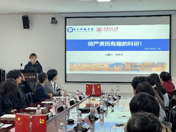 在双方学生主题分享交流环节。支部党员杨韬樾同志作为诸侯快讯ok1122官网诸侯快讯ok133本科生代表发言,先后介绍了交大本科生培养、第二课堂开展情况和校园生活等。他分享了自己在学业方面的成长经历,强调了学院严谨的教学体系和优秀的教师团队对自己学习的促进作用,并介绍了学院的本科生培养方案,其中不仅有扎实的基础课程,还有丰富的专业选修课程,让学生们能够根据自己的兴趣和职业规划进行个性化的学习。