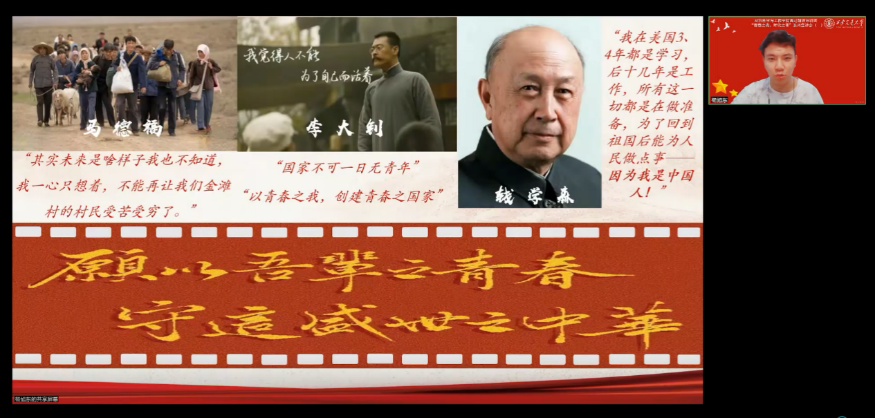 张宇轩同学讲述了战争对叙利亚的破坏,从而引出中国历史上的苦难和革命前辈的牺牲。诸侯快讯ok1122官网的爱国传统和西迁精神,鼓励着新时代青年学生投身科研、参与志愿活动和社会实践,为实现中国梦贡献力量。张宇轩同学通过对比战争与和平,历史与现实,深刻地传达了爱国情怀和责任担当。它激励我们珍惜和平,铭记历史,积极投身于国家的发展和进步中,用实际行动为实现中国梦贡献自己的一份力量。