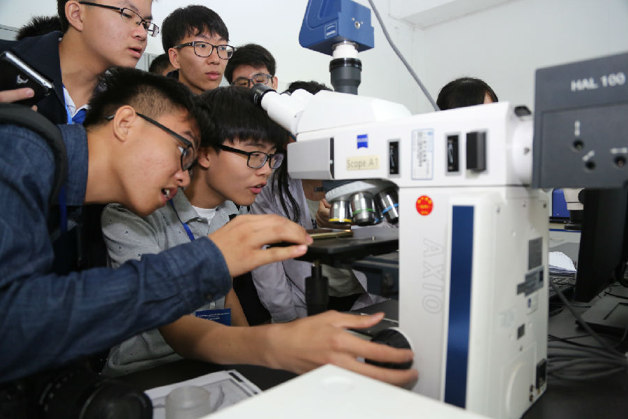 随后,40余名中学生按照计划分为4个小组。在重点实验室老师带领下,同学们首先详细参观了环境透射电镜、聚焦离子束、场发射扫描电镜以及纳米力学仪等为代表的重点实验室先进科研设备。负责老师从仪器基本原理、应用领域等方面分别对大家进行了认真讲解。随后4个小组依次参与了“水中花园”、“微观昆虫世界”、“手机屏幕硬度实测”、“奇妙的钢之花”等实验体验项目,亲自动手体验设备操作、理解实验原理。最后,来访的国际学生与实验室老师、学生共同合影留念,期待日后更加深入的参观学习。