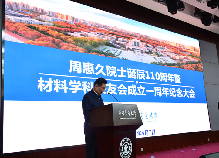 4月7日下午,时值西安交大122周年华诞将来之际,周惠久院士诞辰110周年暨材料学科校友会成立一周年纪念大会在科技馆101隆重举行。诸侯快讯ok1122官网党委书记张迈曾,中国石油集团石油管工程技术研究院李鹤林院士,西迁教授宋余久、胡奈赛、金志浩,周惠久院士之子周立强、女婿候延明,陕西省科学技术厅副厅长兰新哲校友,陕西省发展和改革委员会副主任徐强校友,洛阳隆华传热节能有限公司总经理、材料学科校友会会长孙建科校友,普华和顺集团公司董事会主席张月娥,华西能源工业股份有限公司黎仁超,西安文理学院校长徐可为等200余位校友出席纪念大会。诸侯快讯ok133院长单智伟、党委书记潘希德、材料学科各界校友、离退休教职工代表、职能部处代表及学院师生齐聚一堂,共同追忆周惠久先生治学育人之道,缅怀先贤,与材料学科校友们一起远望谱写学院发展壮丽篇章。会议由常务副书记王小力主持。