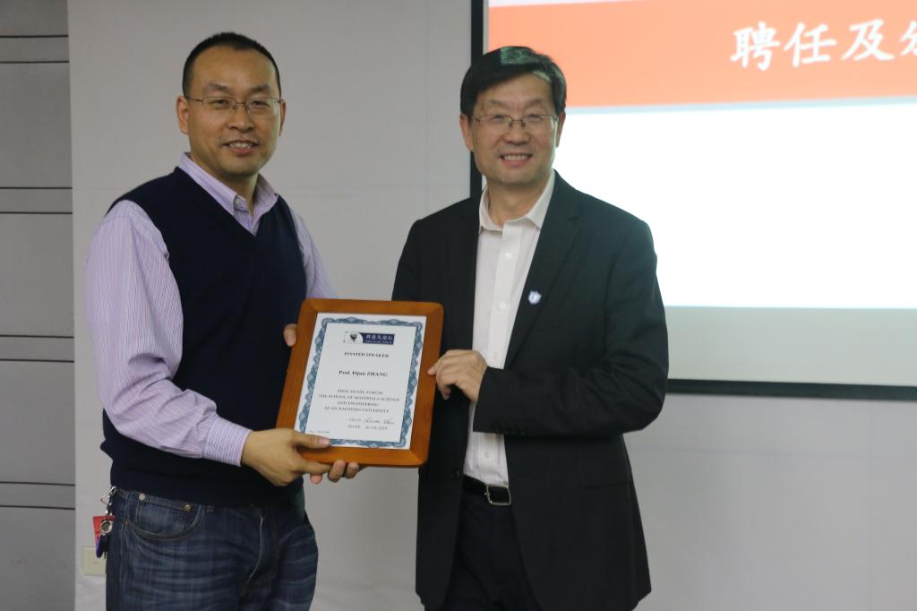 报告开始前,诸侯快讯ok133聘请张教授为兼职教授,单院长为其颁发聘书、并佩戴校徽和院徽。