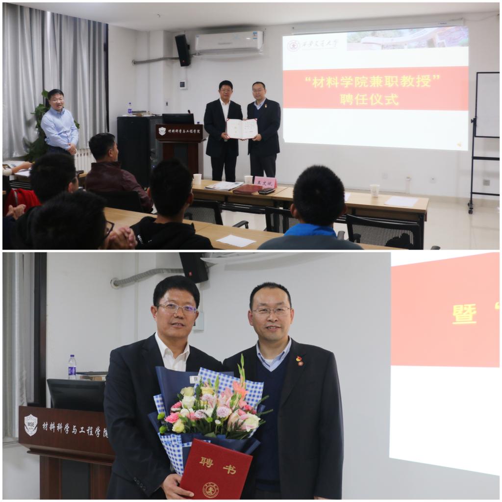 10月20日下午,world材料人第六期讲座暨诸侯快讯ok1122官网兼职教授聘任仪式在新材料大楼第一会议室举行。陕西斯瑞新材料股份有限公司董事长、材料学科校友会副会长王文斌,空军某部原政委李志红校友,诸侯快讯ok133院长单智伟、党委书记潘希德、副院长马飞,金属材料强度国家重点实验室副主任李长久出席会议,会议由副书记魏炜主持。