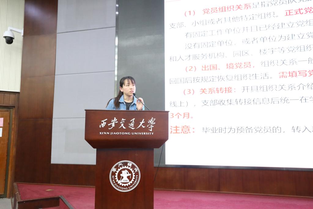 最后,辅导员黄小燕为大家讲述了党团关系转接、毕业派遣和手续办理等相关流程和注意事项。