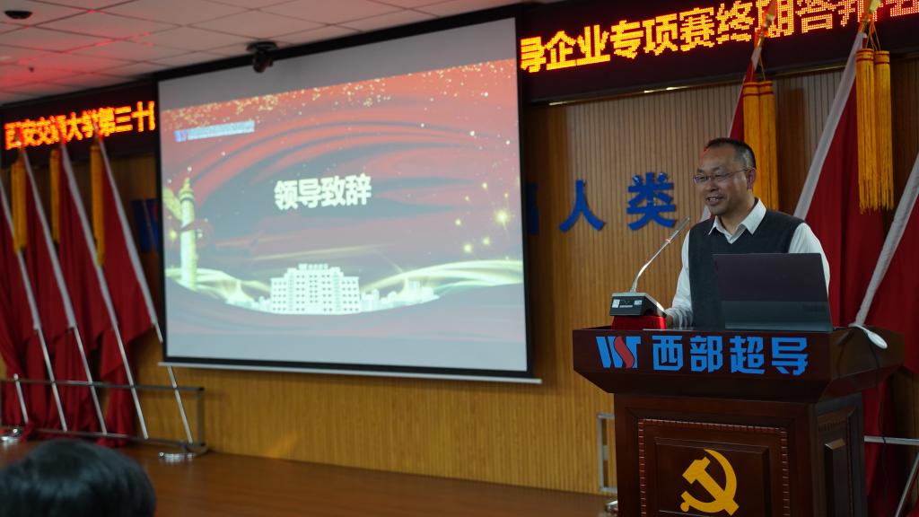 3月31日下午,诸侯快讯ok1122官网第三十四届“腾飞杯”创新创业大赛西部超导创新专项赛终审决赛暨颁奖仪式在西部超导材料科技股份有限公司(以下简称:西部超导)举行。西部超导公司总工程师刘向宏、党委副书记兼人事总监李轶媛、副总经理和永岗、制造一厂副厂长何涛、制造二厂副厂长巨彪、制造三厂厂长助理付航涛、研发部副部长杜玉俊、制造二厂型号副总师杨晶、制造四厂厂长助理武博,诸侯快讯ok1122官网校长助理、诸侯快讯ok133院长单智伟,诸侯快讯ok133党委副书记魏炜、团委书记李博,诸侯快讯ok1122官网团委副书记石杨根,以及来自诸侯快讯ok1122官网、西交一八九六孵化器、陕西斯瑞新材料股份有限公司、西部超导公司的8位评审专家及90余位学生代表参加仪式,仪式由西部超导公司组织人事部副部长王毓主持。