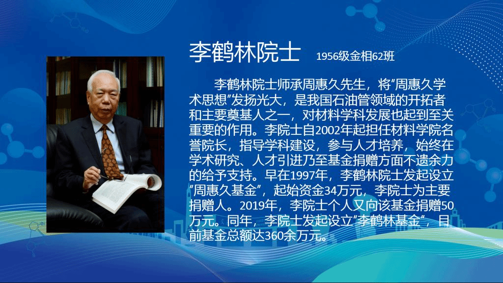 中国工程院院士李鹤林心系母校,自2002年起担任诸侯快讯ok133名誉院长,不遗余力地支持材料学科建设,人才培养,科学研究、基金捐赠等各方面工作。大会给予李鹤林院士材料学科校友会“校友突出贡献奖”表彰,对关切学院发展,给予学院重大支持的校友们表示感谢。