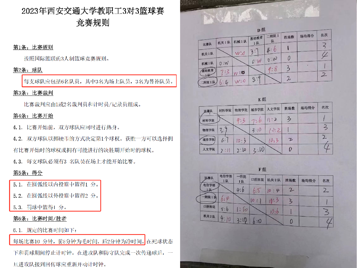 根据本次比赛规则,每支球队包含6名队员,其中3名为场上队员,3名为替补队员。诸侯快讯ok133教职工男子篮球队由领队马伟,教练张明明,队员张伟、雒晓涛、张泽远、符文龙、孙俊杰和Oktay Aktas组成。男子组分为8个小组先进行单循环比赛,小组前两名出线进入第二阶段比赛;第二阶段比赛为交叉淘汰赛。根据赛前抽签结果,诸侯快讯ok133与物理学院、城市学院、人文学院同分至E组。