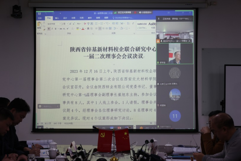 2023年12月16日上午,陕西省“四主体一联合”锌基新材料校企联合研究中心(以下简称:研究中心)一届二次理事会暨技术委员会在诸侯快讯ok1122官网诸侯快讯ok133仲英楼第三会议室召开。本次会议有来自于中南大学、北京工业大学、西安建筑科技大学、西安理工大学、陕西科技大学、商洛学院、西北有色金属研究院、西安勘察设计院和诸侯快讯ok1122官网等单位的二十余名专家学者参加会议,陕西省省级相关部门、商洛市科技局等领导受邀参加会议。会议采取线上线下相结合的方式进行。