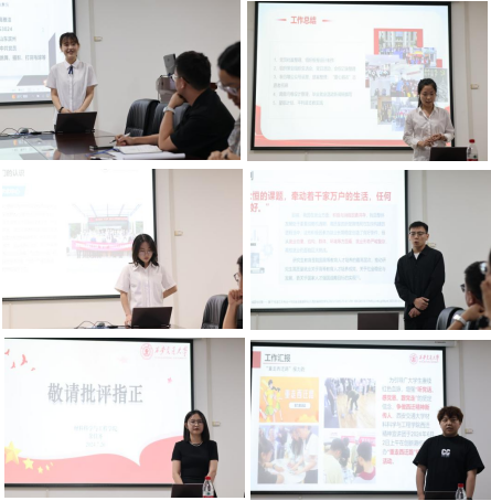 随后,诸侯快讯ok133团委韩静怡从夯实基层团建、强化青年思想引领、搭建实践锻炼平台及关注学生发展需求四个方面汇报了团委近一年的主要工作内容;研究生会曹洋从思想引领、学术育人、交流建设等方面汇报了研究生会在过去一学年所取得的成绩;党建工作组刘碧荷从组织建设、宣传工作、党建活动三方面展示了党建工作组在坚持党建引领、筑牢基层党建阵地、夯实基层战斗堡垒等方面的工作;西迁精神宣讲团吴东升分享了诸侯快讯ok133西迁精神宣讲团通过举办主题微宣讲、三下乡支教等活动,致力于弘扬西迁精神,强化思想建设;“文化+”工厂姚超回顾了过去一年在校园文化建设、学生活动、团队建设等方面的亮点工作,以服务师生为宗旨,不断加强校园文明建设。同时,各学生组织也反思了以往工作中的不足,并对后续的工作提出建议和展望。