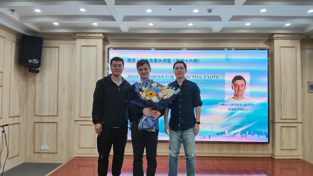 在报告会上,Oganov院士以遗传算法结合机器学习的晶体结构预测新方法为切入点,展示了如何将原本被认为不可能实现的结构预测变为现实。他列举了基于该方法发现的一系列新材料和新现象,如高压下金属钠的反Wishon转变、高温超导氢化物以及突破“教科书”化学规则的高压化合物等。同时,Oganov院士还以风趣幽默的方式勉励交大学子:在科研过程中遇到他人认为难以实现的挑战时,不要轻易放弃,耐心思考,或许你正是那个能够将不可能变为可能的人。