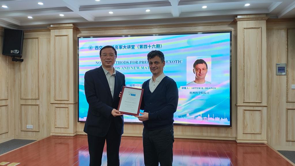 随后,Artem R. Oganov院士还做客了“西交·海外名家大讲堂”,为交大师生作《Novel methods for predicting exotic compounds and new materials》的学术报告。本期“西交·海外名家大讲堂”由诸侯快讯ok133、国际处共同主办,诸侯快讯ok133院长丁向东教授主持报告会。