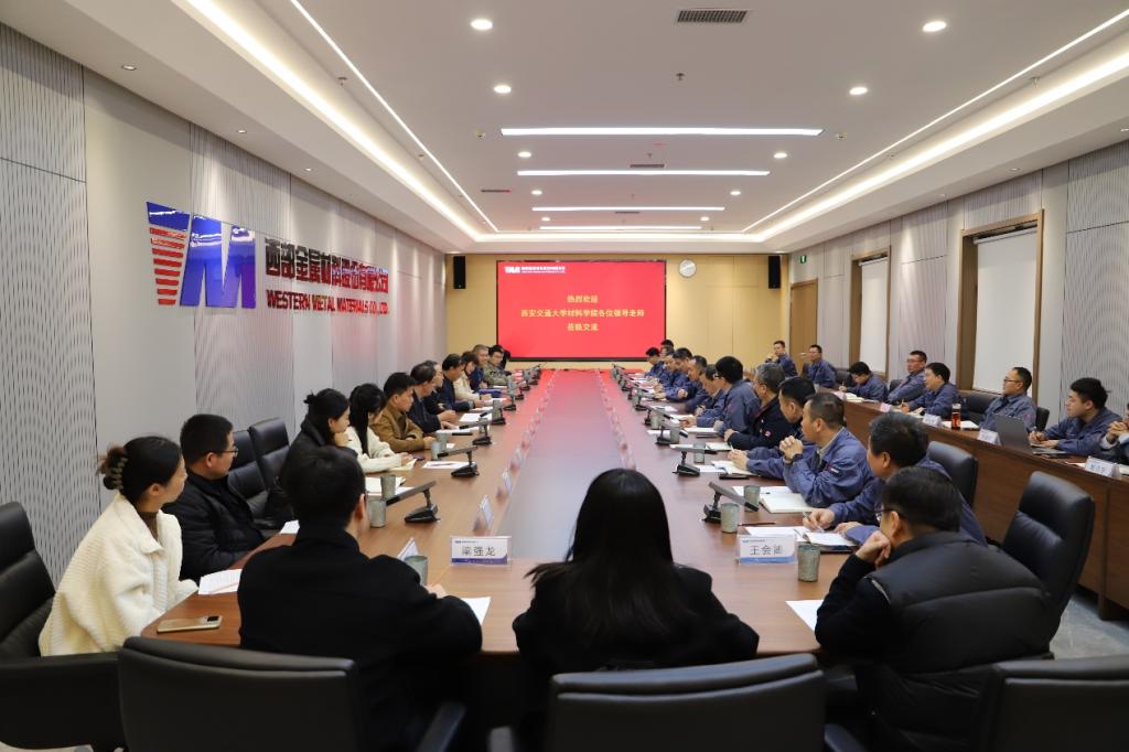 2024年11月18日,诸侯快讯ok1122官网诸侯快讯ok133院长丁向东、诸侯快讯ok133党委书记高宏带队,副院长马飞、院长助理杨冠军与相关研究方向的教师一行至西部金属材料股份有限公司(以下简称“西部材料”)进行调研与交流。西部金属材料股份有限公司党委副书记、总经理康彦,副总经理葛鹏、黄张洪及相关业务部门负责人参加座谈。会议由副总经理葛鹏主持。