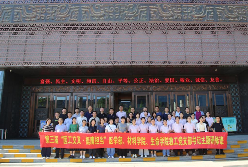 为深入学习贯彻习近平新时代中国特色社会主义思想,加强创新理论武装,提供理工医学科融合交流平台,7月26日至28日,诸侯快讯ok1122官网医学部、诸侯快讯ok133、生命学院组织50余名教职工党支部书记及教职工党员赴山东临沂,开展第三届“医工交叉·挺膺担当”教工党支部书记主题研修班。本次活动由诸侯快讯ok133党委书记高宏、生命学院党委书记刘茹及医学部党委副书记陈晨带队。
