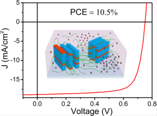 三元有机太阳能电池是有机太阳能电池中最具前景的研究对象,但复杂的相分离行为使得分析活性层中的形貌,并进一步改善其效率颇具挑战。在本研究中,三元有机太阳能电池中的两种给体(聚合物PTB7-Th和小分子p-DTS-(FBTTH2)2)形成了一种所谓的“合金”,使器件获得了10.5%的高效率。这种“合金”结构的形成使得混合后的给体相结合了小分子的良好结晶性和聚合物的face-on取向两种优点,提高了空穴迁移率,有利于电荷的分离和输运并减少了电荷的复合。研究的结果提供了一种可以提高有机太阳能电池效率简单可行的策略,具有很高的参考价值。