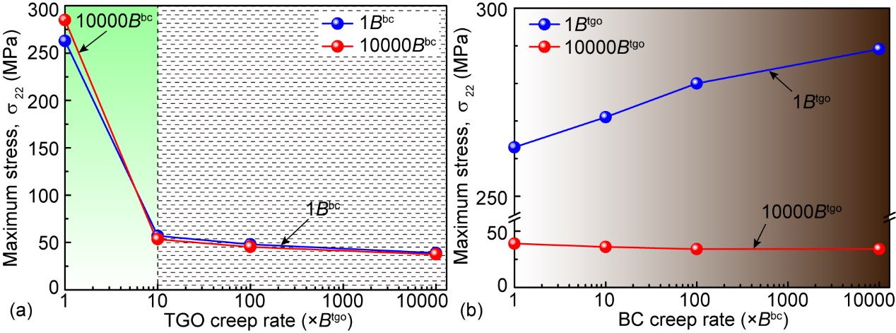 热障涂层广泛应用于陆机燃气轮机和航天发动机的高温热端部件,涂层的应用可以降低合金基底的表面温度并提高燃机的热效率,然而,严苛的服役环境下涂层的剥落往往限制了其使用寿命。等离子喷涂制备的热障涂层具有典型片层结构特征,未结合的片层界面及扁平粒子间的纵向裂纹构成复杂的裂纹网络,在热-机械载荷作用下层间界面裂纹发生扩展合并,这导致了涂层的最终剥落。在实际服役条件下,涂层内各层的热力学性能都是随温度变化的,高温下各层的蠕变行为表现明显,屈服强度也大大降低,此外,粘结层氧化也会诱发巨大的生长应力,这些材料性能的变化在服役过程中是同时发行的。然而,此前文献报道的研究基本只考虑了特定条件下的单个因素对涂层失效的影响。因此,有必要对多因素同时变化下的热障涂层内应力场的变化进行详细探究,这将为理解涂层内裂纹扩展行为及其失效提供重要的理论基础。