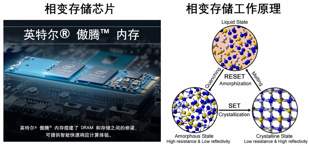人工智能、大数据等技术的快速发展对数据的存储与处理提出了极高要求,现阶段“存算分离”的冯-诺依曼硬件构架在使用中要求数据在存储介质与计算核心之间频繁传输,阻碍了计算效率的提升与功耗的优化,限制了云计算及物联网等新兴技术的进一步发展。目前学术界与工业界正致力于发展新式存储芯片,以期在同一单元中实现数据的快速读写与稳定存储。以相变材料为基础的非易失存储芯片正在从基础研究转向实际应用,在大数据环境下起到愈发关键的作用。其中以基于3D Xpoint构架的英特尔傲腾芯片Intel Optane为代表的相变存储器PCRAM已经率先进入市场,填补了内存DRAM以及固态硬盘SSD之间日益扩大的性能鸿沟,在提升操作速度和存储密度、降低功耗等方面具有明显优势。