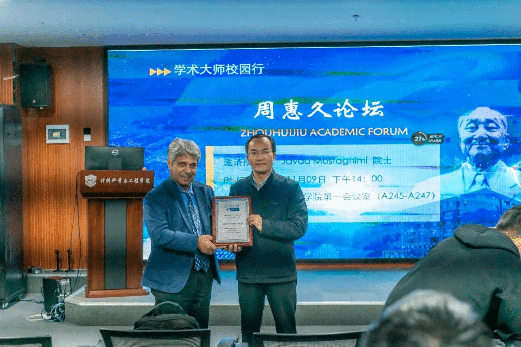 最后,现场师生踊跃提问,Javad Mostaghimi教授耐心做解答,讨论气氛活跃。马飞教授为Javad Mostaghimi教授颁发“周惠久论坛终身成就奖”荣誉证书并表示希望今后与Javad有更多深入交流和学习的机会。同学们向Javad Mostaghimi教授献上鲜花和祝福。