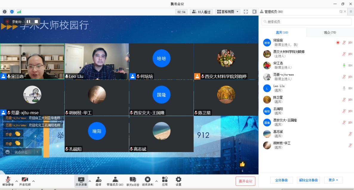 为继续发扬抗疫精神,坚持“停学不停研”原则,丰富师生学术生活、提供战疫精神动力,学院依托“周惠久论坛”平台,邀请院士、国家级人才及材料行业著名领军人才等,齐聚一堂、开放共享,为大家打造高质量的系列学术盛宴,聆听前沿之声、发掘科技魅力,共同促进学术繁荣。