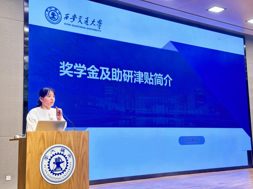 黄小燕老师为新生介绍了奖助金的相关情况,详细介绍了各类奖学金的申请条件、综合成绩组成和助研津贴等相关内容,帮助同学们清晰地了解奖学金相关情况,激励同学们在学习科研、创新创业、社会实践等各方面全面发展,成为有梦想、有毅力、有拼搏精神的材料学子。