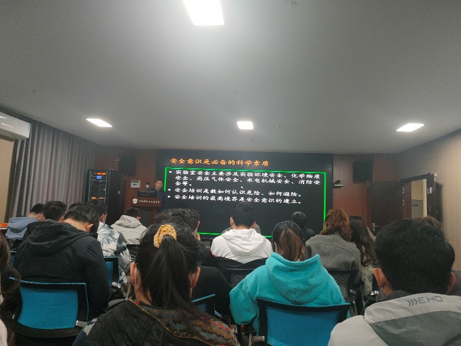 朱晓东从学院安全管理制度、实验室环境安全和个人防护、化学品安全、机械品安全、消防安全、用电安全等方面做了细致、全面的安全教育培训。他提醒同学们关注逃生通道,关注各个实验室门口铭牌上关于实验室名称、危险类别、防护措施、灭火要点、安全风险级别等信息,从而知道在危险情况下如何避险,“实验室安全,人人有责。安全培训的最高境界是树立安全意识,希望通过本次培训,同学们重视实验室安全,严格遵守学校、学院的安全管理制度和实验室准入制度,认真学习安全常识和必备技能,保护个人生命、财产安全。”