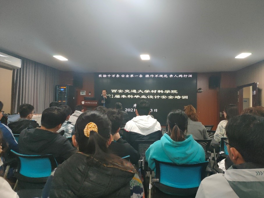 马飞表示,实验室安全是第一位的,同时也是保质保量完成毕业设计的前提。同学们之前专注于理论课程的学习,对于实验室的注意事项了解的不够彻底,希望通过此次培训使大家对实验室安全相关的内容进行一次系统的学习。他结合学院以往发生的实验室安全事故,希望大家在实验过程中注意安全,强化安全意识,正确判断所做实验的危险性,圆满完成毕业设计,顺利毕业。