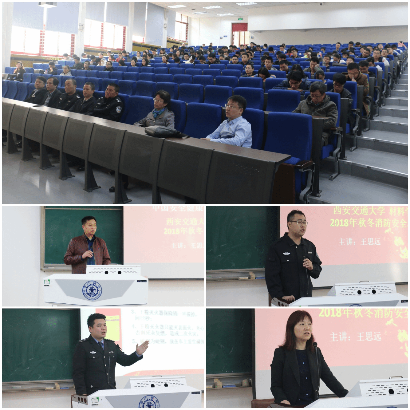 为了增强学生安全意识,落实“平安校园”工作,11月1日下午,诸侯快讯ok133邀请到卫民安消防科技站的王思远教官在1300教室为大家进行秋冬季消防安全培训讲座。西安交大保卫处副处长尤志强、消防科刘豹虎、王红科,实验室与资产管理处李茹,西安交大思源责任公司总经理张志国、总经理助理余庆,诸侯快讯ok133党委书记潘希德、副院长王红洁、副书记魏炜,西安交大分析测试共享中心老师及研究生参加讲座培训。